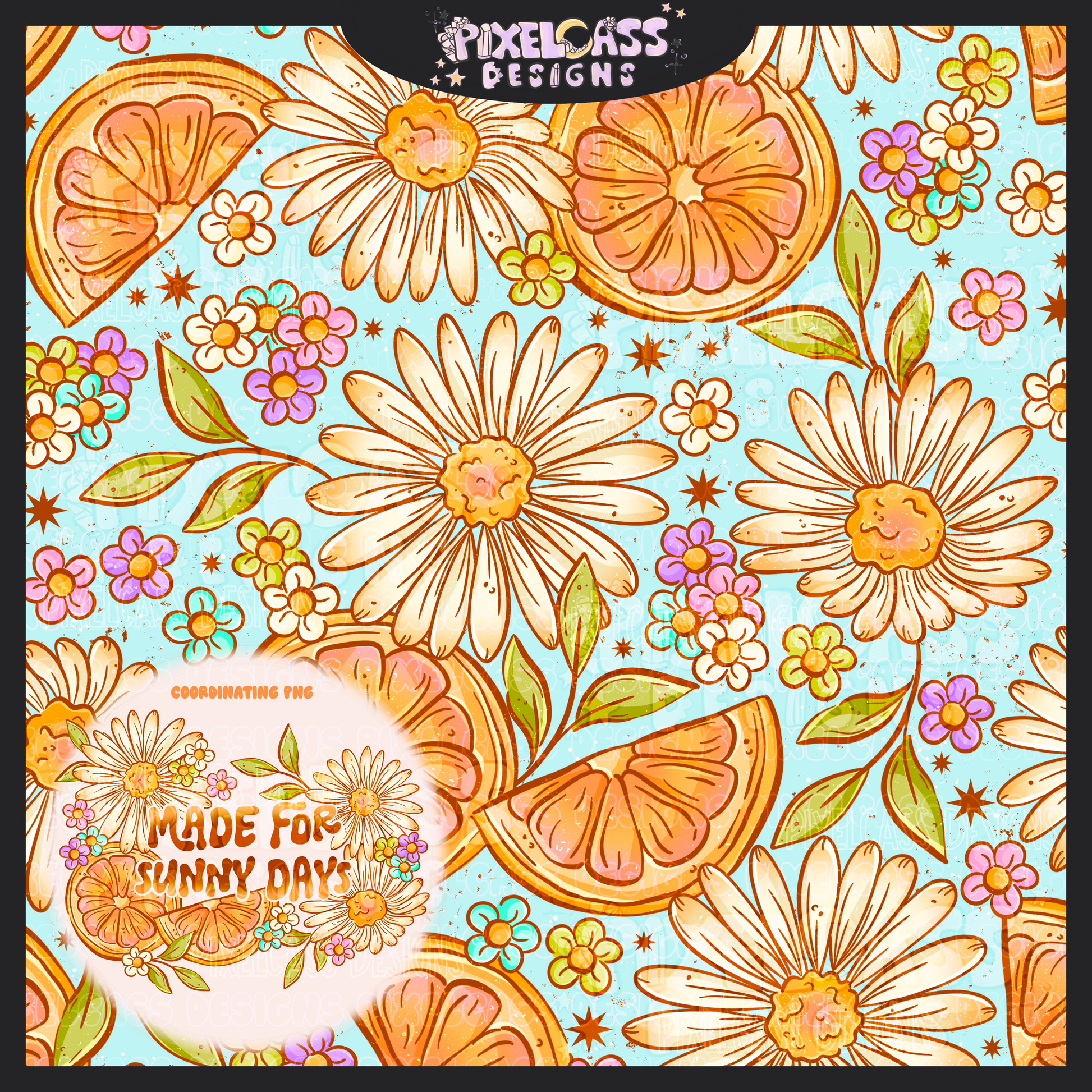 Seamless files will come as-is with their colored background. PNG Sublimation files will come on a transparent background, intended to be used for sublimation or DTF. PNG Sublimation files can also have a colored background added behind them for printing panels.