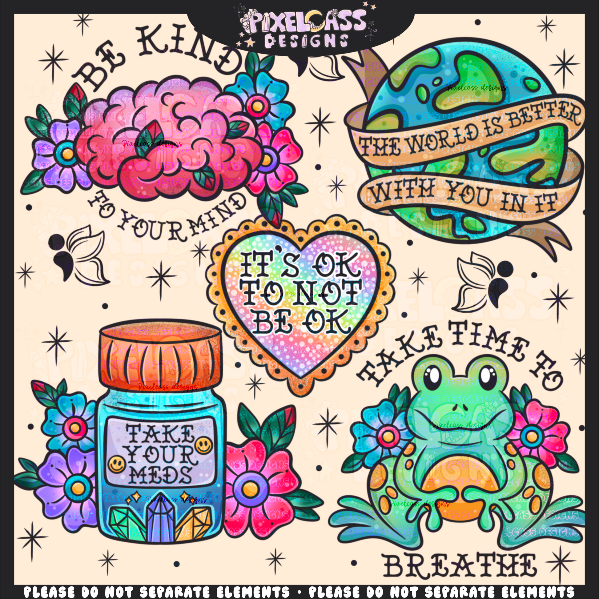 Mental Health Tattoo Flash PNG SUBLIMATION