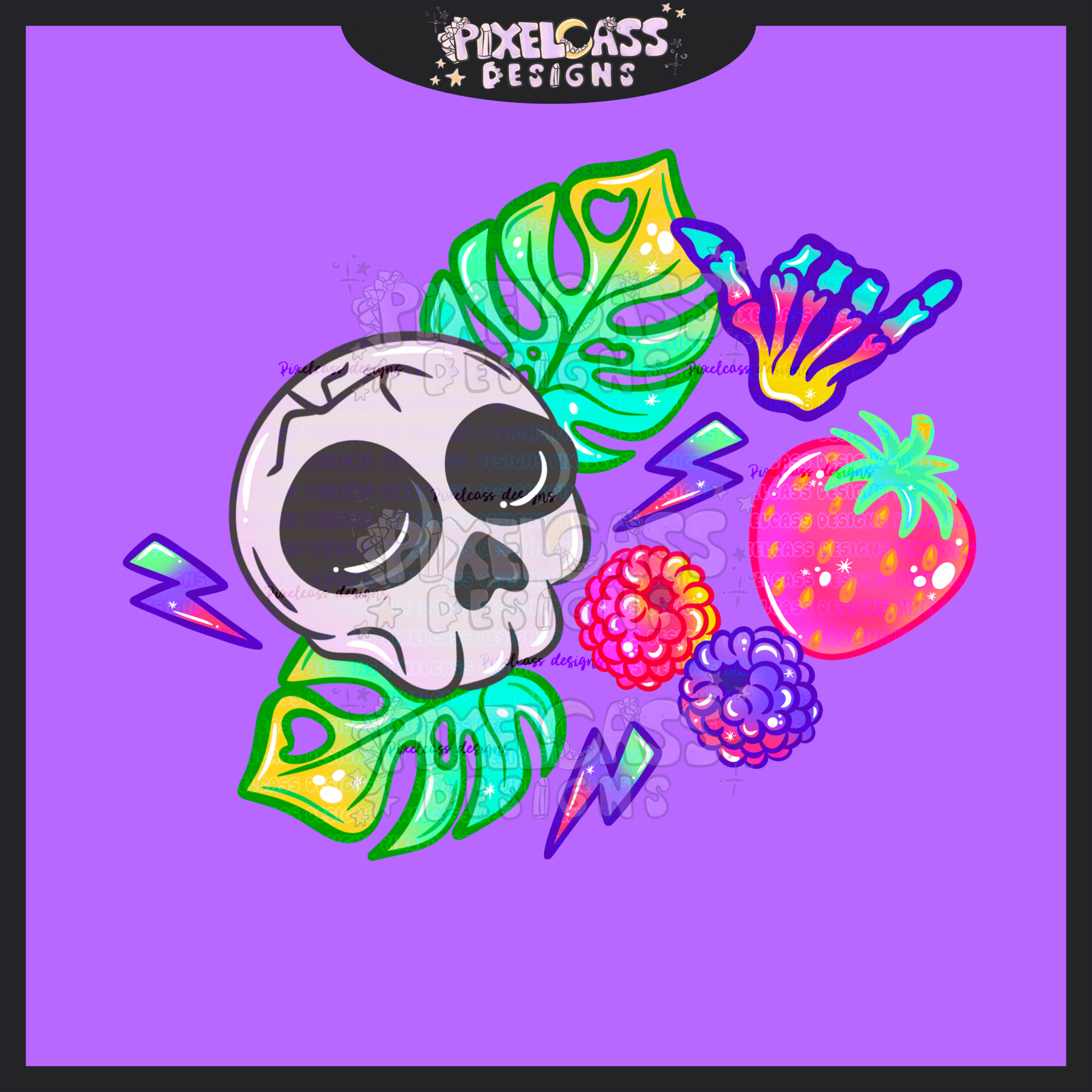 Neon Berry Skulls PNG SUBLIMATION